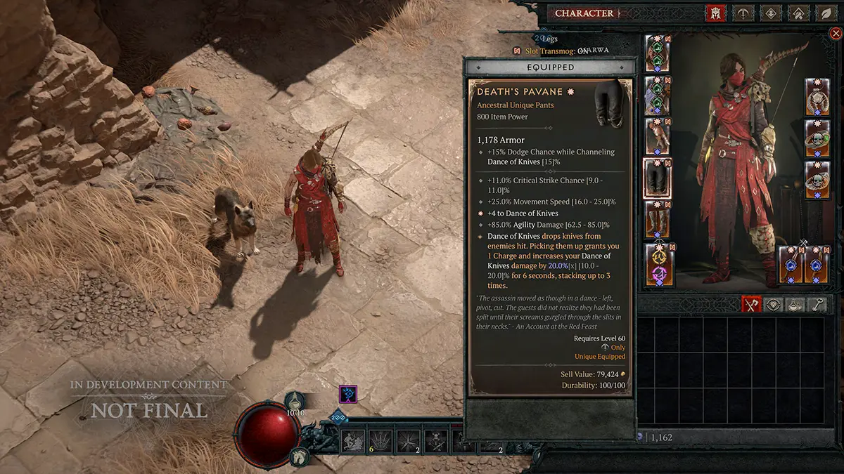 - Inherent: +15% Dodge Chance while Channeling Dance of Knives